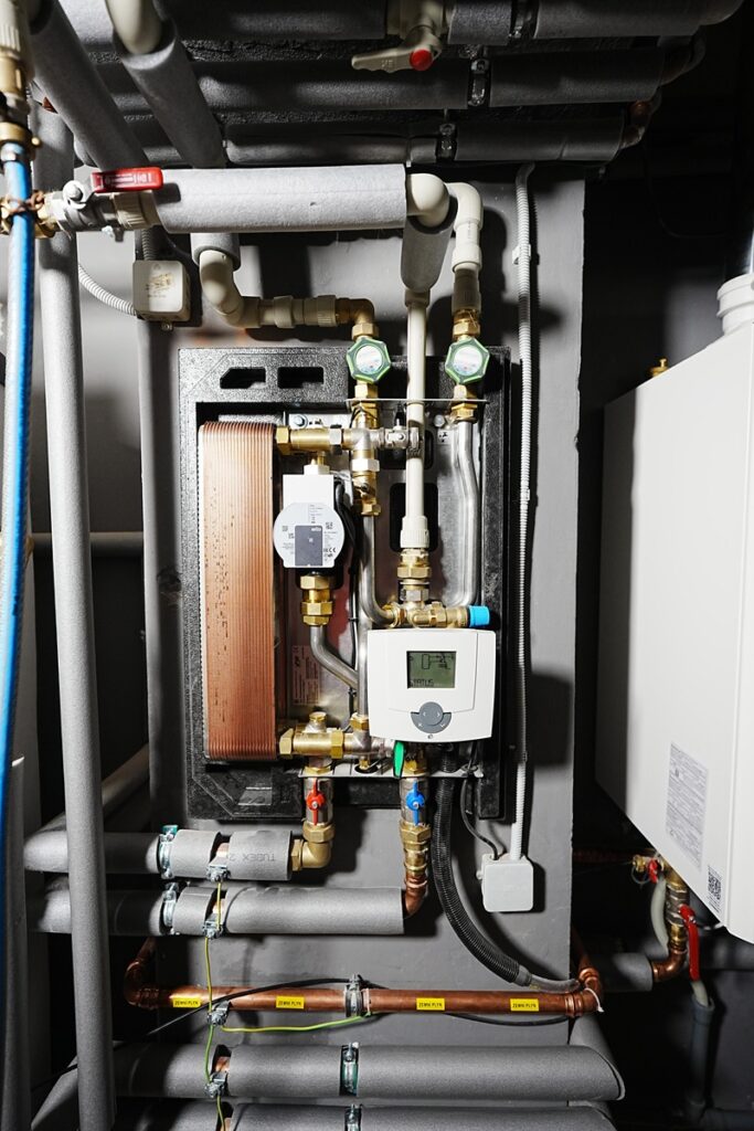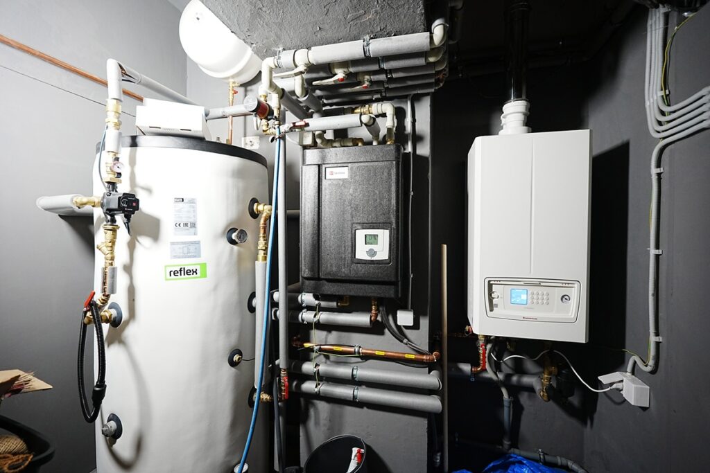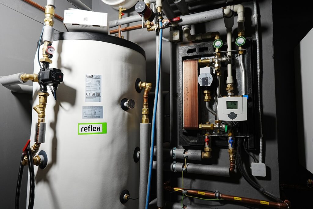 Základem systému je předávací stanice Taconova TacoTherm Fresh Mega X, která slouží k přípravě čerstvé teplé vody průtokovým způsobem. K tomu byl použit 500litrový akumulační zásobník, nabíjený běžným plynovým kotlem o výkonu 49 kW. Díky této kombinaci lze nejen rychle reagovat na okamžitý odběr teplé vody, ale zároveň efektivně hospodařit s prostorem. Systém byl navržen tak, aby součet tepelných výkonů plynového kotle a 500litrového akumulačního zásobníku činil celkem 65–70 kW, což s rezervou zajišťuje dostatek teplé vody i při maximálním odběru celých pivních lázní.