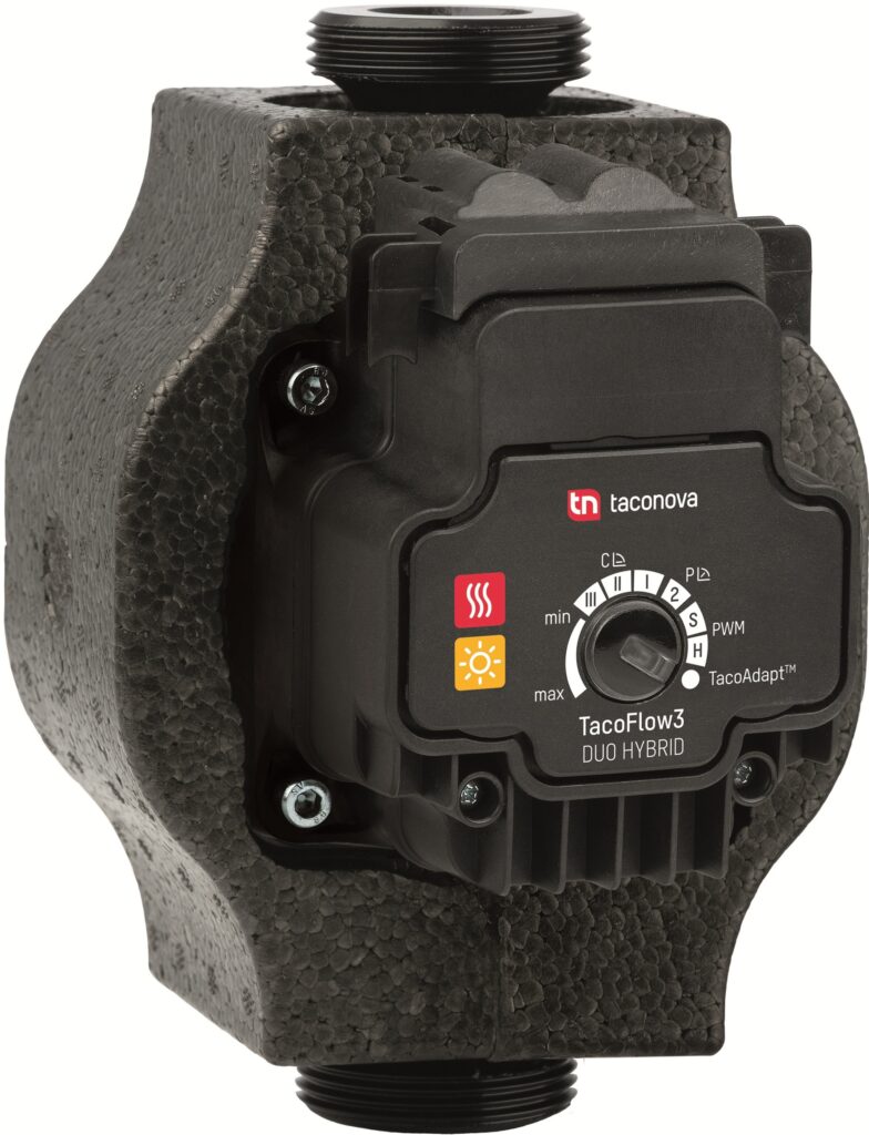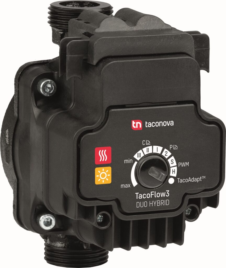 Společnost Taconova přichází na trh se skutečně všestranným zařízením – novým hybridním oběhovým čerpadlem TacoFlow3 Duo. Tento model nové generace čerpadel TacoFlow3 spojuje kompaktní design, výkonnou technologii a široké možnosti použití a regulace, které splňují rostoucí nároky moderních topných a solárních systémů.