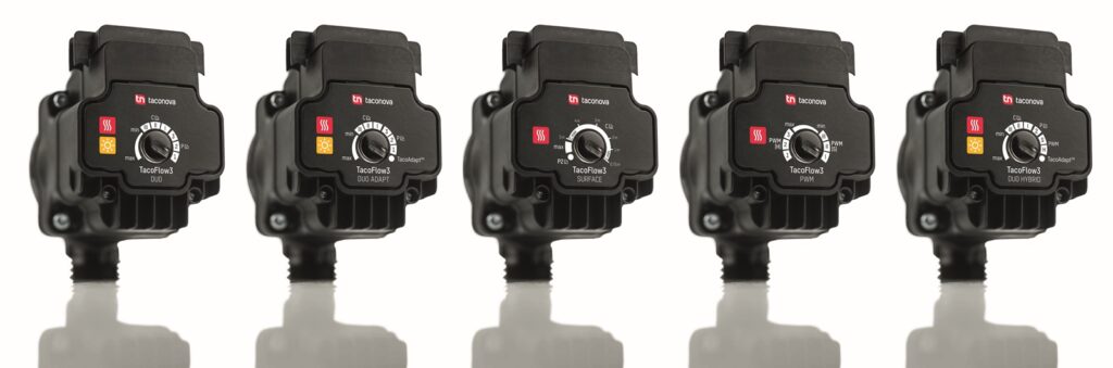 Již základní modely této řady přesvědčí maximální flexibilitou, robustností a výkonem. Oběhové čerpadlo TacoFlow3 pro vytápění a oběhové čerpadlo TacoFlow3 Duo, které je vhodné pro topné i solární okruhy, lze regulovat pomocí tří funkcí nastavení (min-max, proporcionální tlak, konstantní tlak). Všem modelům je společný velmi vysoký výkon při menších rozměrech. Díky unikátním high-tech motorům ECM dosahují oběhová čerpadla řady TacoFlow3 vyššího průtoku než jejich předchůdci, a to až 8,5 metru, čímž stanovují nová měřítka pro základní modely – a to vše při pozoruhodně kompaktním a zjednodušeném designu. I proto lze čerpadla mimořádně snadno integrovat do stávajících systémů.
