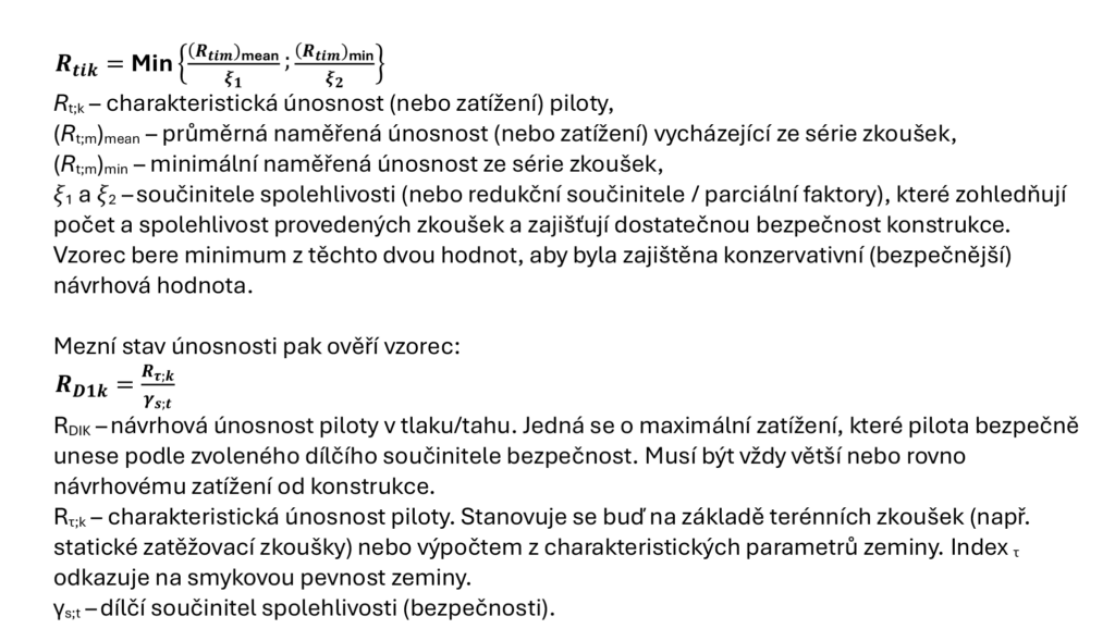 Pro hlubinné založení (kam spadají i zemní vruty) norma používá tzv. korelační součinitele 𝜉. Tyto koeficienty přímo penalizují nízký počet zkoušek. Pokud bylo provedeno málo testů, vychází při výpočtu „papírově“ nižší únosnost jednoho vrutu, a projektant tak musí navrhnout hustší síť vrutů, aby budova nespadla.