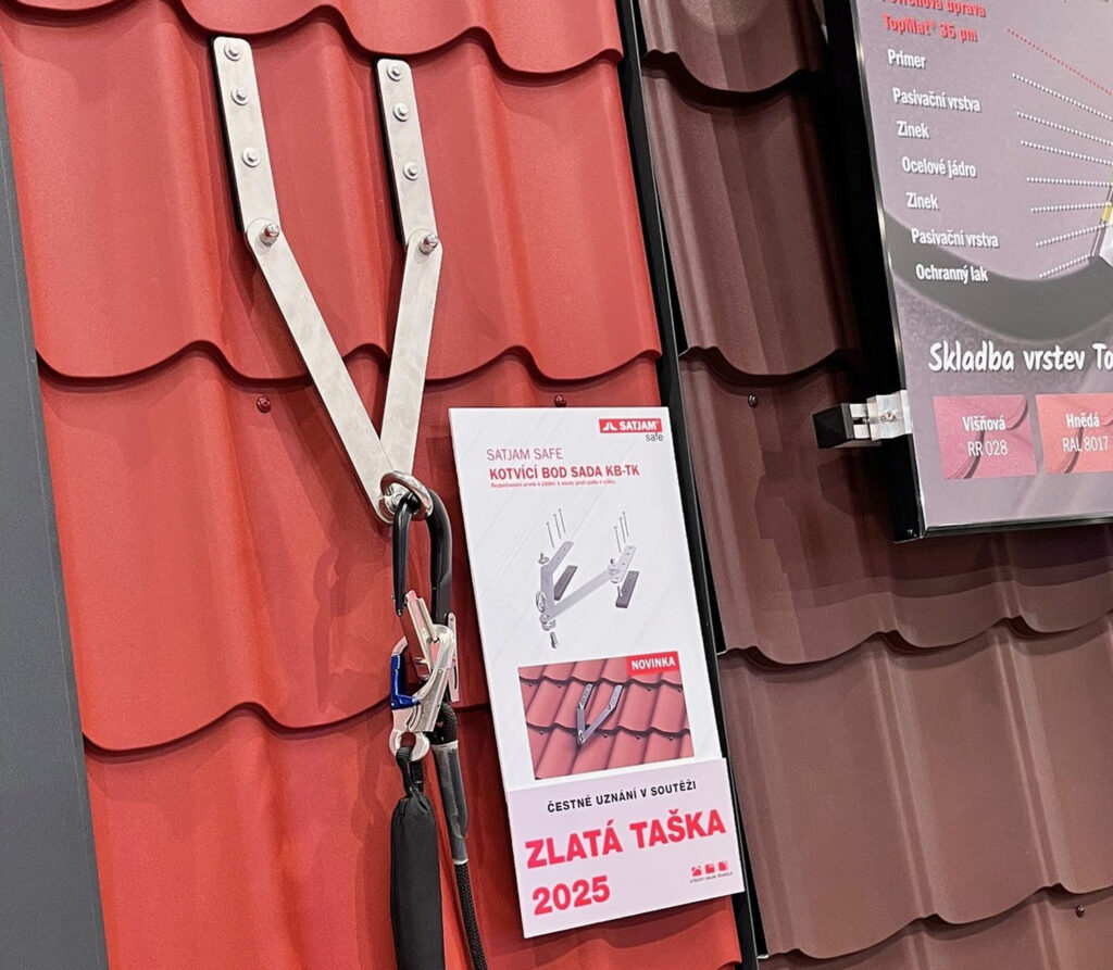 Jedinečnost tohoto bezpečnostního prvku zaujala i odbornou porotu prestižní soutěže Zlatá taška pořádané v rámci veletrhu Střechy-Solar-Řemeslo 2025. Kotvicí bod v ní získal čestné uznání a potvrdil, že ve vývoji střešních systémů patří SATJAM ke špičce.