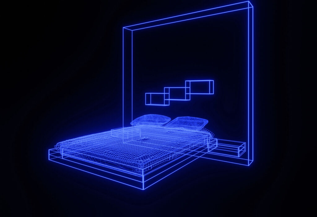 Vzhledem k malému množství betonu, který byl potřeba – cca 5 m3, jsme s investorem probrali možnost míchání a výroby bílého betonu v bubnu autodomíchávače za předem daných podmínek a parametrů, ať již ve způsobu dávkování vstupních materiálů, tak i rychlosti a době míchání betonu v bubnu autodomíchávače. Na celý proces výroby, ukládání a vibrování betonu dohlížel technolog ZAPA beton, který zároveň kontroloval ukládání betonu pomocí čerpadla a jeho pečlivé vibrování ponorným vibrátorem. Výzvu představovaly opět zabudované krabice – niky, výškově odstupňované na třikrát. Za účelem minimalizace vzniku nevzhledných kaveren zhotovil investor v bednění speciální otvory pro ukládání betonu a jeho vibrování. Konstrukce stěny z bílého betonu drží zdánlivě levitující ložnicovou postel, viz fotografie č. 10, což patří mezi další z mnoha technických, ale i estetických vrcholů celého projektu, viz fotografie č. 11.