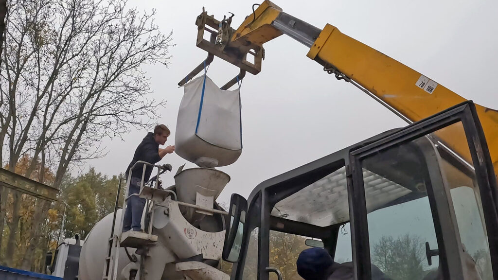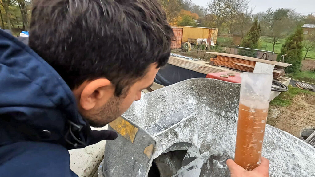 Receptura betonu obsahovala bílý cement, bílý písek i hrubou frakci. Způsob dávkování vstupních složek můžete vidět na fotografii č. 7, 8 a 9.