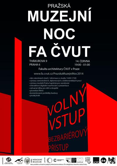V sobotu 14. června 2014 bude Fakulta architektury ČVUT v Praze jednou ze 39 institucí, kde se uskuteční v pořadí již jedenáctý ročník Pražské muzejní noci. Akci pořádají Národní muzeum, Dopravní podnik hlavního města Prahy a Asociace muzeí a galerií ČR.