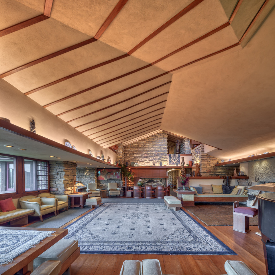 Mezi jeho vrcholná díla patří slavný dům Fallingwater. Při diskusi o tomto projektu a okolní krajině na přednášce pro Taliesin Fellowship Wright poznamenal: „Fallingwater je velkým darem, jedním z největších darů, které lze zde na Zemi zažít. Myslím, že se dosud nic nevyrovná tomu souladu a vyjádření principu naprostého poklidu. Jsme v náručí lesa a potoku – všechny prvky struktury se spojují tak tiše, že opravdu neslyšíte žádný hluk; jen hudbu potoka. Naslouchat Fallingwateru je jako naslouchat tichu krajiny.“