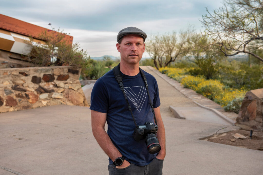 „Práci fotografa Andrewa Pielage registruji již několik let. Vždy jsem především obdivoval jeho dokonale komponované snímky fenomenálních staveb Franka Lloyda Wrighta, nejdůležitějšího představitele organické architektury minulého století. Andrew se totiž rozhodl zdokumentovat kompletní realizované dílo tohoto amerického velikána, které čítá přes 430 staveb. Ze svého bydliště, města Phoenix, se vydává na cesty po celých Spojených státech a postupně si plní svůj sen. Společně se svým kolegou, grafickým designérem Prestonem Charlesem, se Andrew Pielage ve výstavě zaměřuje na konkrétní Wrightovy organické principy, které ilustruje svými vlastními fotografiemi,“ přibližuje kurátor výstavy Adam Štěch.