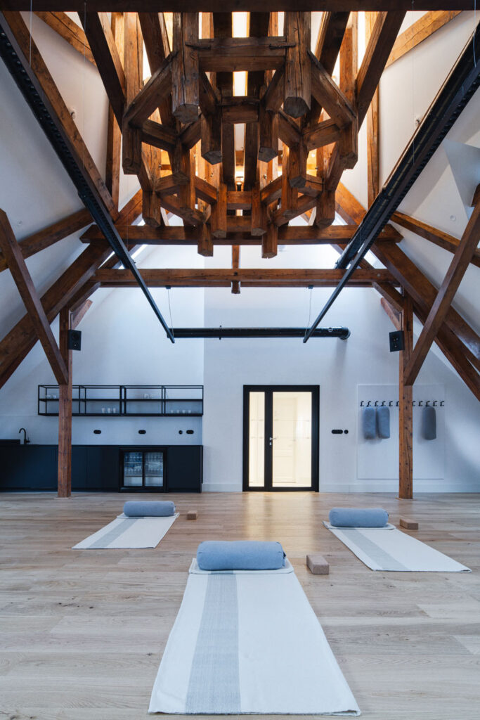 Součástí tří celků se stal hotel, restaurace se salonkem, konferenční multifunkční sál, fitness a wellness centrum spolu s komerčními prostory. Interiér restaurace, nacházející se v prosklené části, ponechává přiznané monolitické konstrukce s rozvody TZB. Dominantou jídelní části je velký krb a bar s velkoformátovým obkladem navazujícím na recepci hotelu. Pokoje jsou doplněny o nábytek vyrobený na míru projektu. Koupelny nesou velkoformátový obklad se vzorem mramoru spolu s kontrastním maloformátovým bílým obkladem. Čistý interiér je akcentován výraznými materiály a samotným prostorem historické budovy. Dominantou konferenčního sálu v podkroví je vyvěšená konstrukce zachované zvonice, která její původní účel propůjčila dnešnímu funkčnímu využití prostoru. Wellness je naopak situován do zachovaných sklepních částí s přiznanými cihlovými klenbami a kamenně-cihlovými stěnami. Fitness centru situovanému do části suterénu pod restaurací je přenechána surovost betonu s přiznanými technologiemi pod stropem.