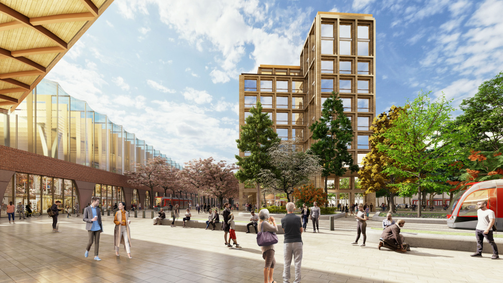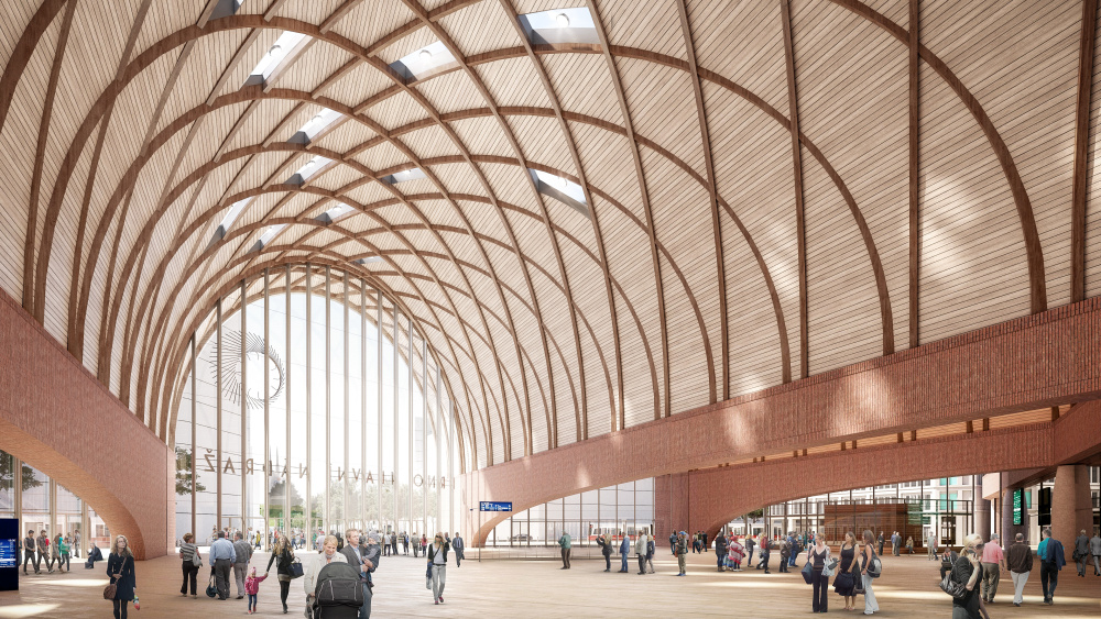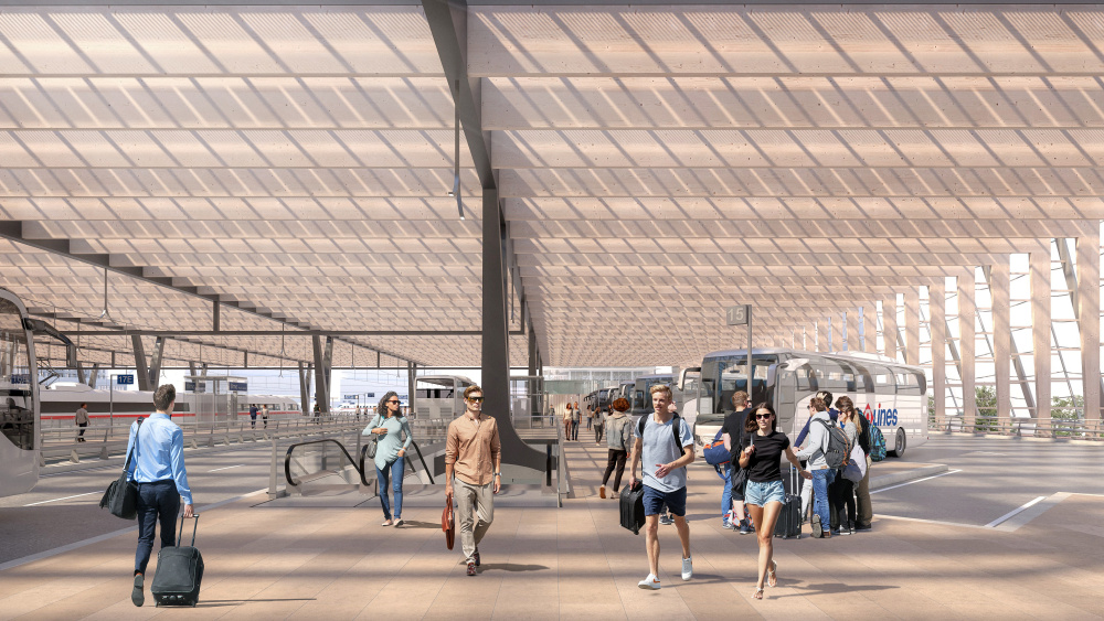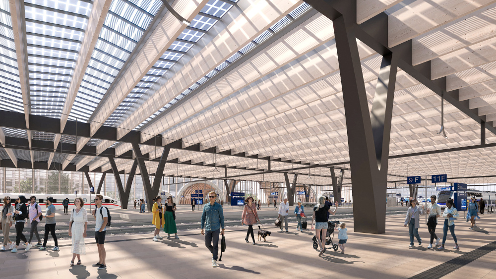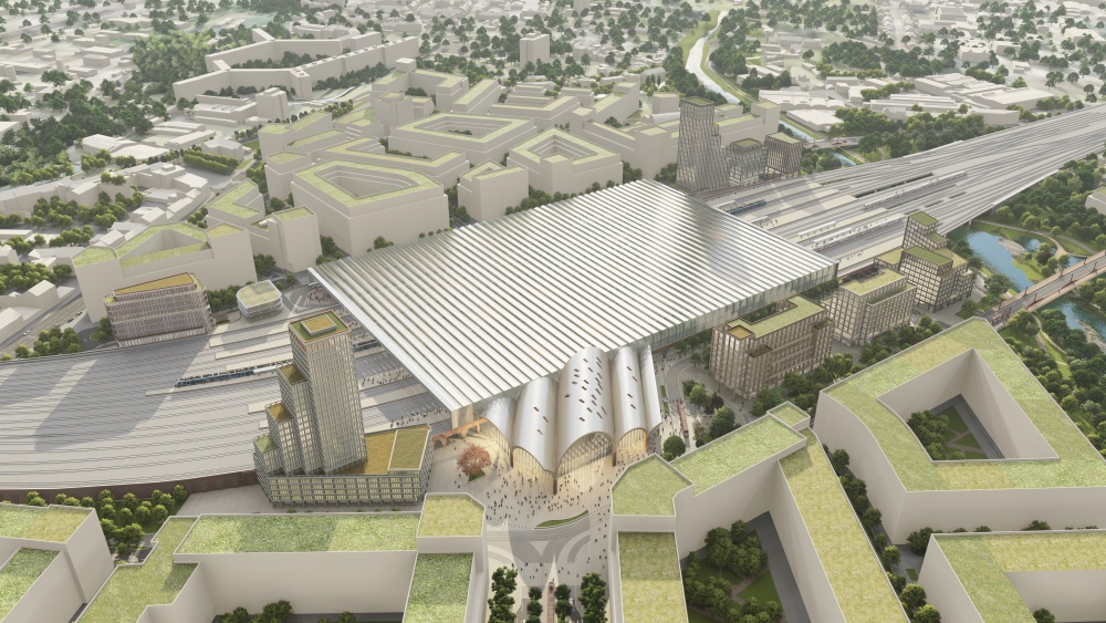 Nový železniční uzel a hlavní nádraží v Brně vzniká podle vítězného návrhu ateliérů Benthem Crouwel Architects a West 8, které stojí například za přestavbami stanic v Amsterdamu či Rotterdamu. Na projektu spolupracují i čeští architekti a projektanti z ateliéru A8000. Stavba by měla začít v roce 2028 a první vlaky mají na nové nádraží přijet v roce 2035.