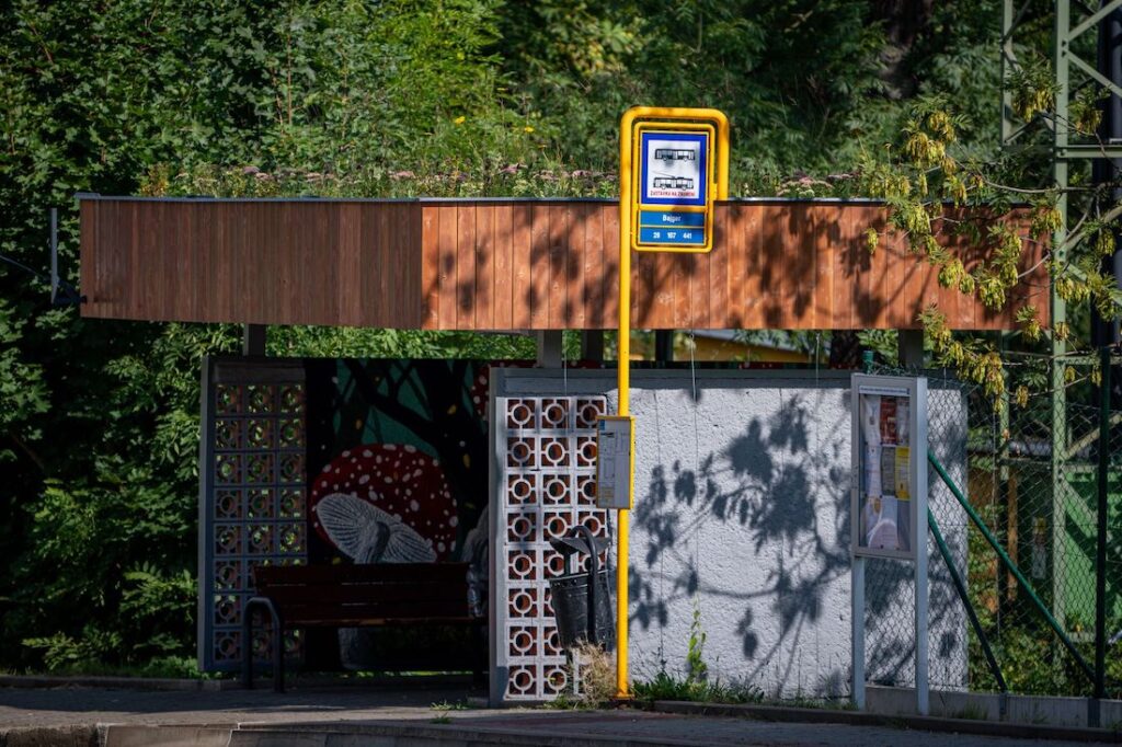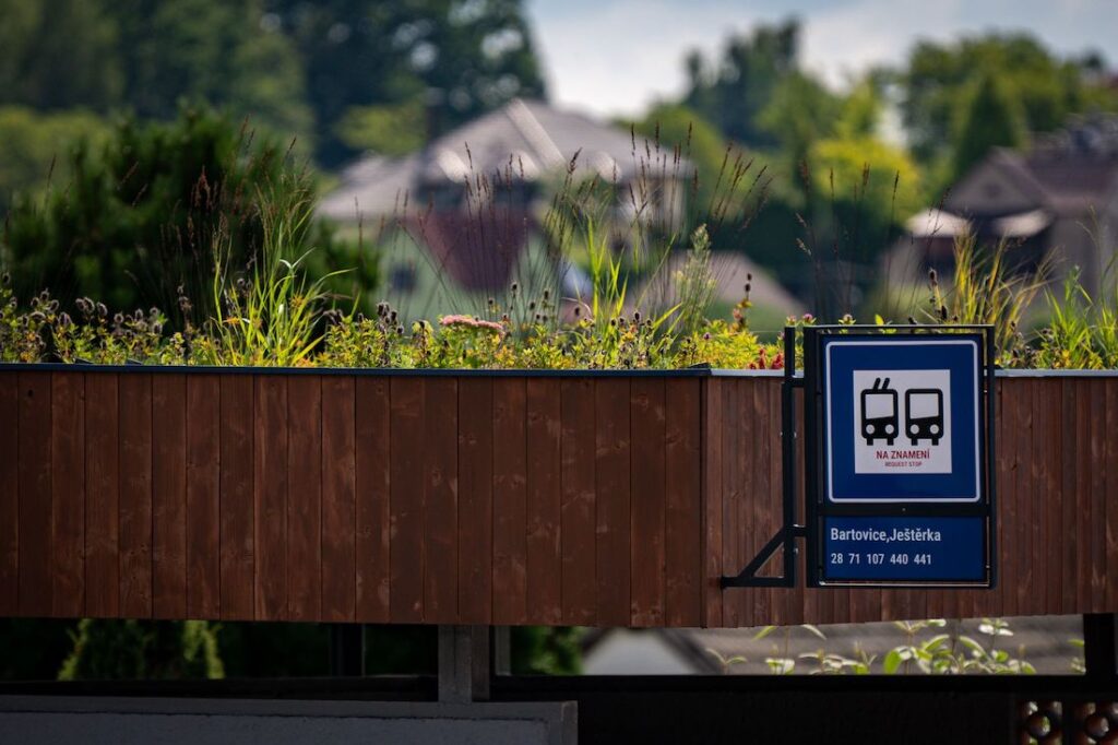 V Radvanicích a Bartovicích bylo celkem 11 autobusových zastávek nově opatřeno „zelenou“ střechou. Vysazeny byly rozchodníky nachové, bezkolenec modrý, řebříček tužebníkovitý, třapatka nachová, bělotrn modrý, třemdava bílá, proso prutnaté. Vegetační souvrství střech je schopno zadržet prakticky celý úhrn srážek v průběhu roku a vznikla dokonce rezerva, omezující negativní vliv přívalových dešťů. Vegetační souvrství odtok vody z přívalového deště značně omezí a u přístřešků se zasakovacím pásem a popínavými rostlinami negativní vliv přívalového deště prakticky eliminuje. U některých přístřešků i s pásy popínavých rostlin byla původní půda obsahující vysoký podíl jílu zčásti vyměněna na vysoce propustný substrát, který v kombinaci s popínavými rostlinami přebytečnou vodu v době přívalu přijme a zajistí její pozvolné zasakování do spodních částí půdy. Vysazeny byly podražce velkolisté, břečťan popínavý, brslen Fortuneův, plaménky aj. Některé zastávky doplnily kresby s tématikou přírody. Projekt byl zahájen v létě loňského roku a kresby jsou dokončovány nyní v období prázdnin. Náklady proměny 11 zastávek se pohybují ve výši zhruba tři miliony korun, dotační podpora pak přesáhla polovinu nákladů, je ve výši dva miliony korun.