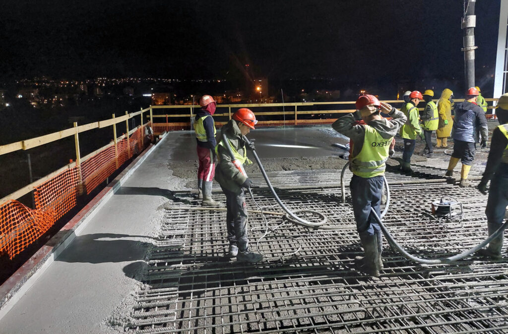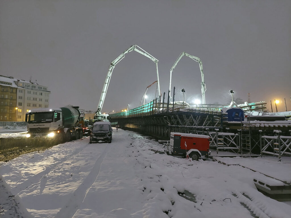 Zároveň byl na stavbě přítomen i laboratorní technik, který pravidelně odebíral vzorky a kontroloval reologické vlastnosti betonů. Díky této dvojí důsledné kontrole proběhly všechny betonáže bez výraznějších komplikací a kvalita výsledného betonu odpovídá vysokým požadavkům investora.