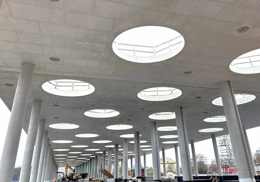 Větší technologickou výzvou však byla nádražní budova, kde kromě požadavků na vyšší pevnosti byly kladeny zásadní požadavky na pohledovost, barevný odstín a velkoobjemové dodávky betonu.