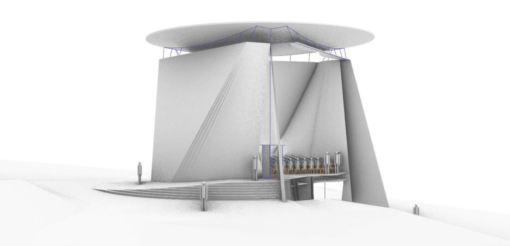 „V závěru výzkumného projektu 3D STAR jsem hledal druh stavby, na kterém by bylo možné plně předvést tvarové a konstrukční možnosti, které tato technologie nabízí a které jiné stavební postupy obtížně zvládají. Hledal jsem zároveň stavbu, která může opustit geometrické principy, na nichž jsou běžné budovy založeny. A stavbu pokud možno osvobozenou od funkčních požadavků, svazujících její architektonický návrh,“ vysvětluje svoji ideu Jiří Suchomel.