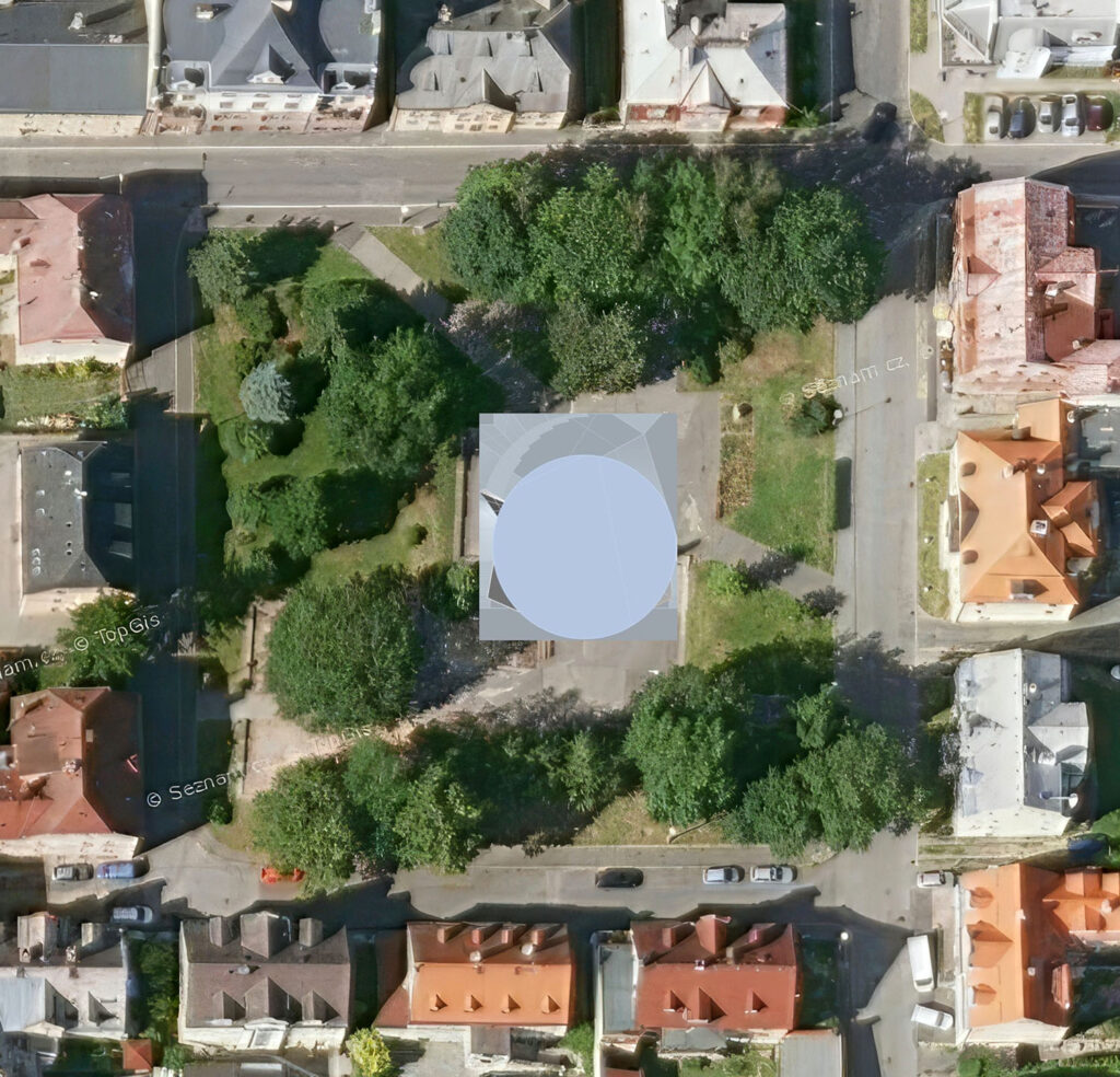 Ideový návrh kostela před časem dokončil. Kostel pro sto sedících osob má hlavní vstup stávajícími parkovými cestami z horní hrany náměstí od ulice Boženy Němcové. Základní tvar navrhl profesor Suchomel tak, aby využil architektonické a statické možnosti tenkostěnných tištěných konstrukcí z betonové směsi. „Tvar je odvozen z pravidelného osmistěnu tvořeného osmi rovnostrannými trojúhelníky. Jedna z bočních stěn je přerušena, aby se otvírala návštěvníkům a zvala je ke vstupu. Pod hlavním prostorem kostela je etáž, která by měla sloužit dalším činnostem sboru a potřebnému zázemí,“ popisuje Jiří Suchomel.