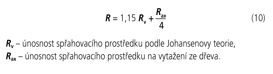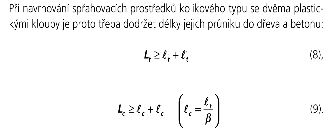 Vztahy (4) a (5) řeší únosnost spřahovacích prostředků pouze podle Johansenovy teorie. Při deformačním tvaru (viz obr. 2) však spřahovací prostředek bude též namáhán osovou silou, která vzniká od jeho ohybu a ukotvení do dřeva a betonu.
