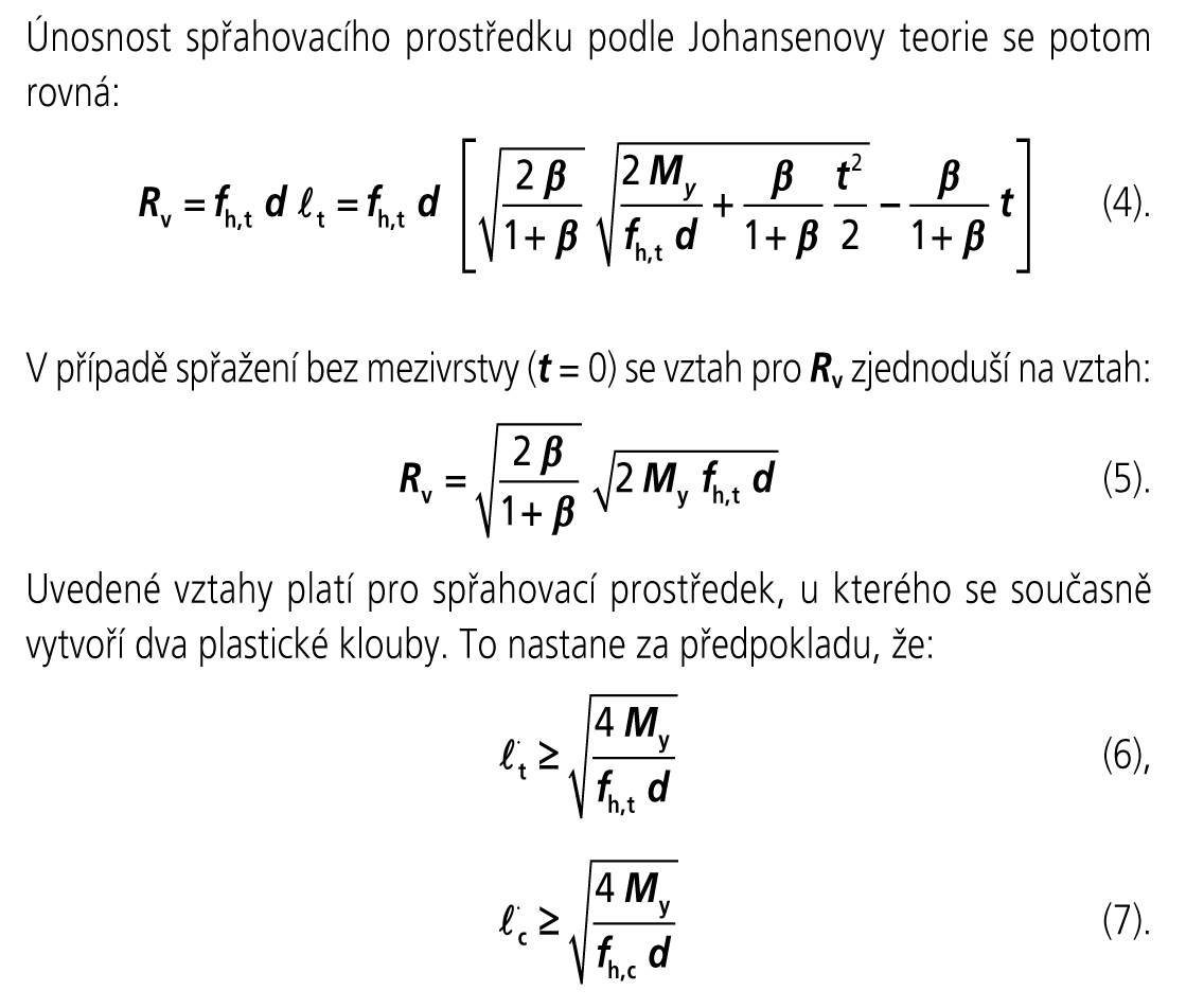 Protože podle tohoto vztahu vycházejí hodnoty plastického momentu únosnosti vyšší než podle ohybových zkoušek, je možné též používat konzervativnější vztah (12). Pomocí tohoto vztahu byly též určeny únosnosti kolíku uvedené v tomto článku.