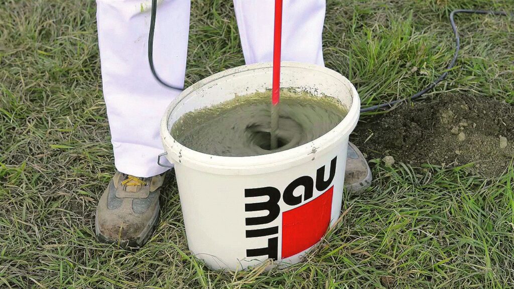Metoda s mícháním betonové směsi za pomoci předepsaného množství záměsové vody se provádí standardně v kbelíku pomocí elektrického mísidla. Před aplikací betonové směsi je třeba pevně fixovat sloupek v otvoru.