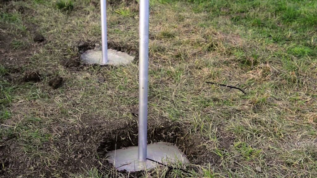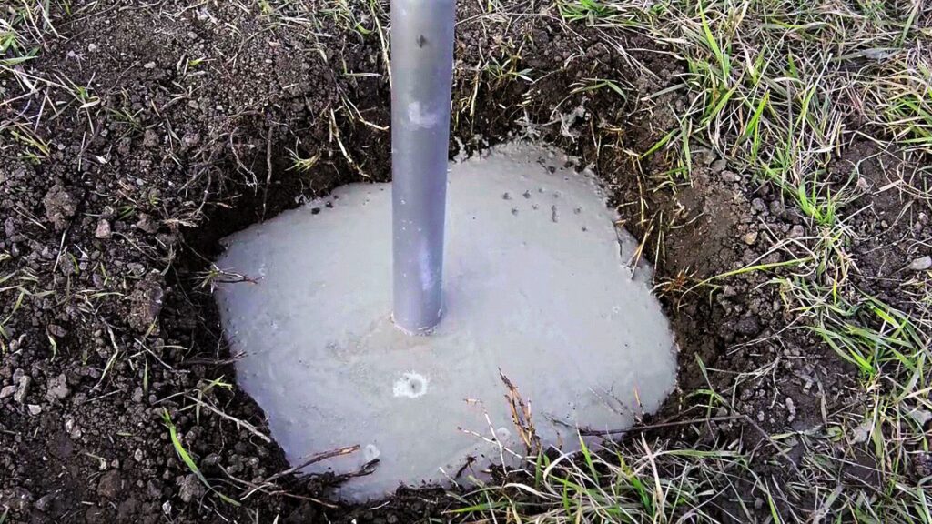 Při metodě s mícháním se předem připravená betonová směs nalévá do otvoru s usazeným sloupkem. Sloupek je možné lehce zatížit již po 30 minutách.