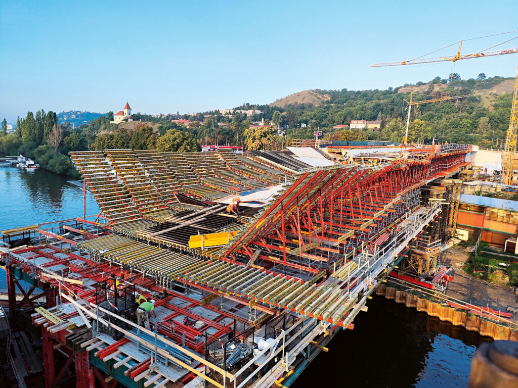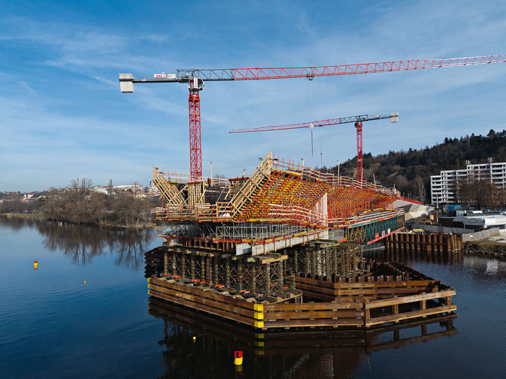 PERI se od začátku podílelo na návrhu bednění, koordinovalo výrobu i logistiku, poskytovalo technickou podporu přímo na stavbě a pomáhalo s optimalizací jednotlivých etap. Také díky tomu vzniká na břehu Vltavy další dopravní spojení, ale rovněž ukázka toho, že i technicky mimořádné stavby lze realizovat s důrazem na detail, estetiku a kvalitu provedení.