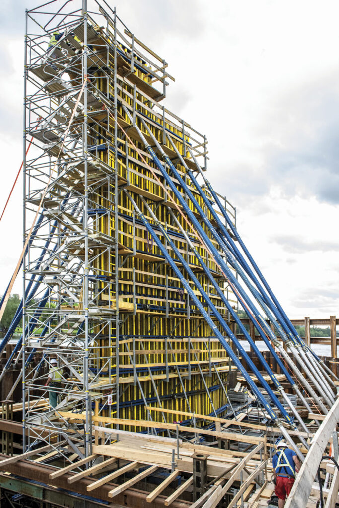 Atypické bednění pro kubistické pilíře mostu