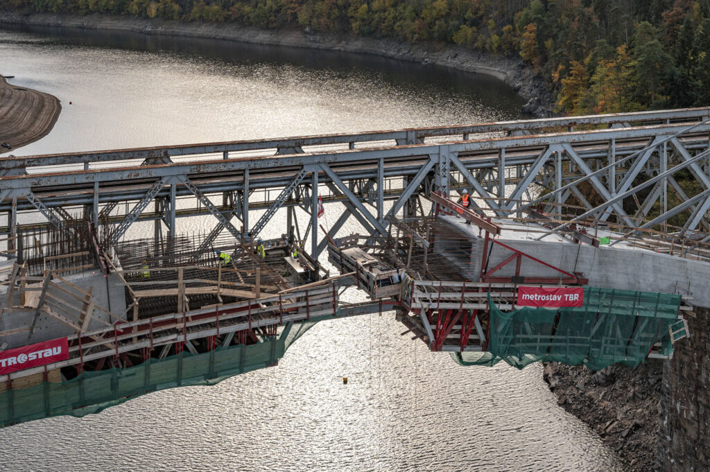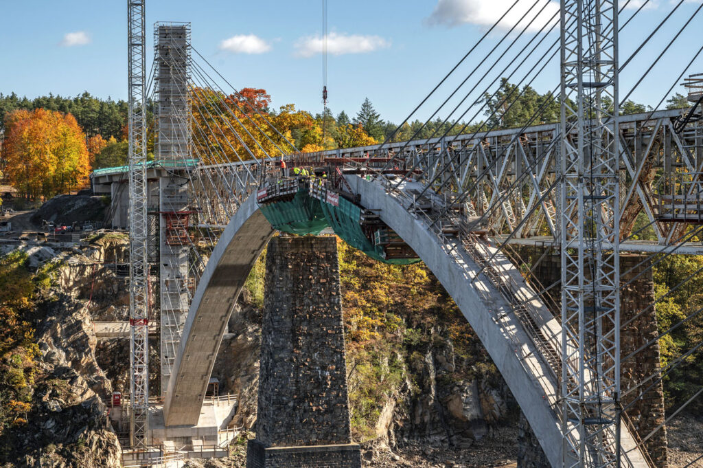„Projekt byl mimořádně náročný, zejména kvůli nutnosti odtěžení skalního masivu a provádění letmé betonáže. Oblouk mostu se u paty klene pod úhlem téměř 45 stupňů a vede jím průchozí komora o výšce 1,5 m a šířce 3,8 m. Museli jsme jej důkladně armovat, což si vyžádalo přes 500 t ocelové výztuže,“ uvádí Aleš Gothard, ředitel a předseda představenstva společnosti Metrostav TBR.