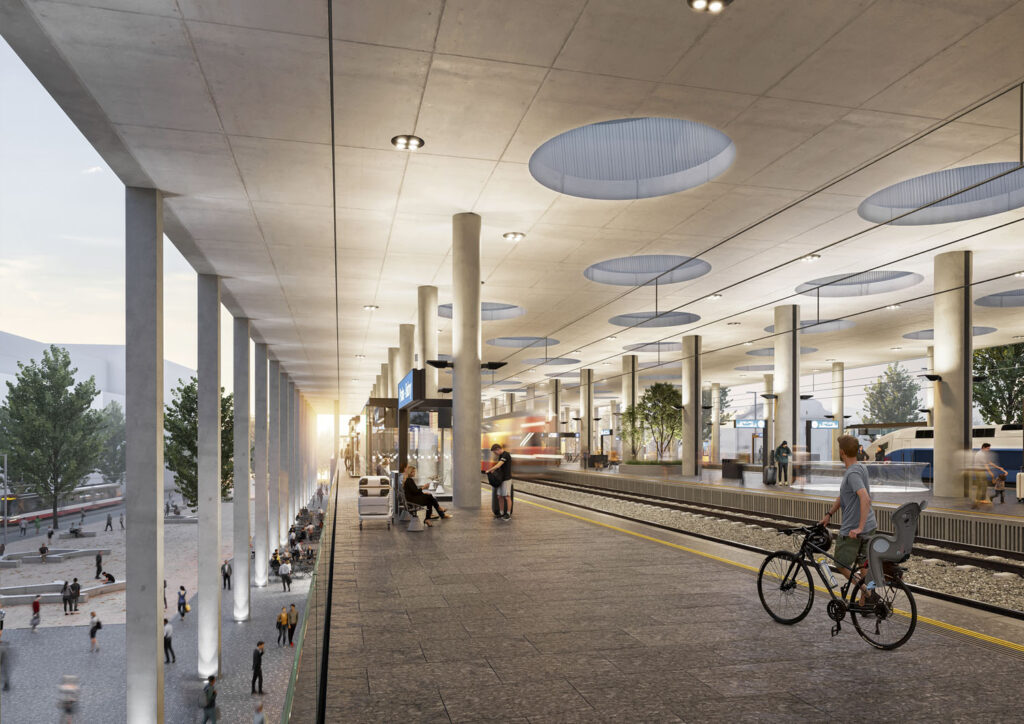 Konstrukce má přibližně obdélníkový tvar o rozměrech cca 250 × 50 m, s výškou přibližně 18 m. Nástupiště je kryto betonovým zastřešením, které je hlavním architektonickým prvkem a zároveň hlavní inženýrskou výzvou celého návrhu, zejména díky vysokým požadavkům na pohledovou kvalitu betonových konstrukcí a zároveň na vysokou únosnost, která v budoucnosti umožní nástavbu až šestipatrové, libovolně hmotově členěné administrativní budovy.