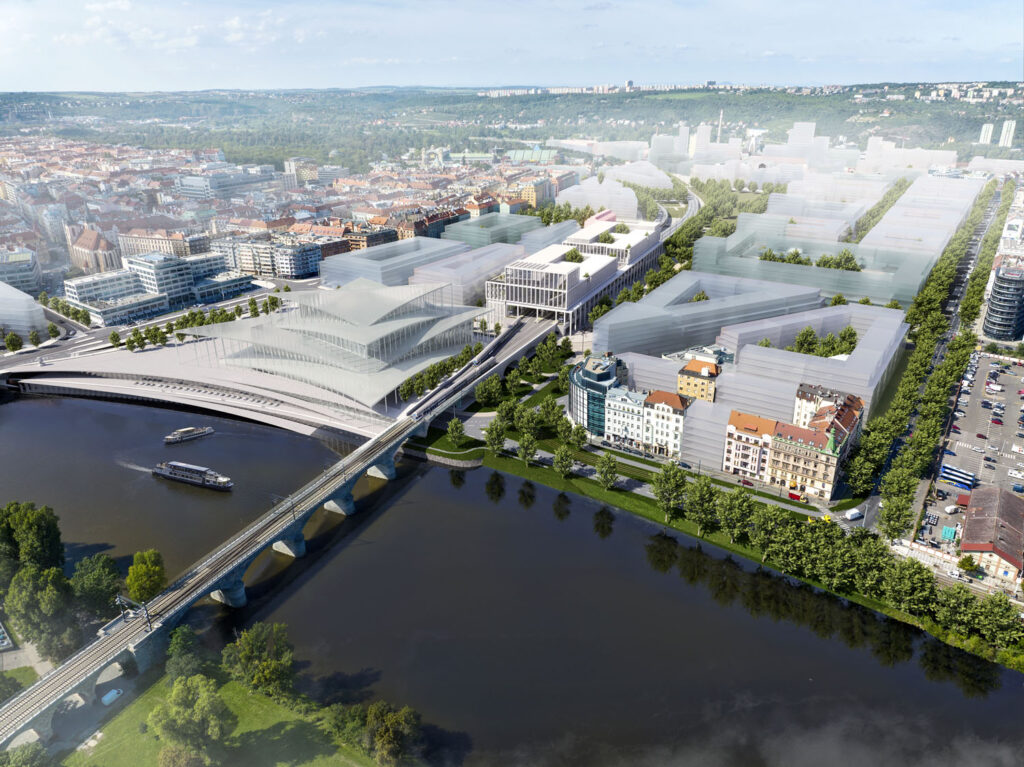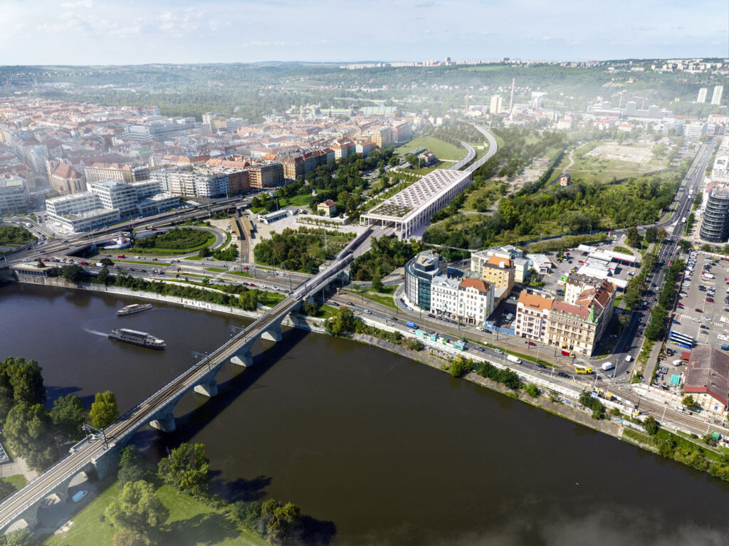 Negrelliho viaduktu a z mimoúrovňového křížení kolejiště s tramvajovou tratí překládanou v rámci budoucí Vltavské filharmonie. Na severní straně pak vychází z navazujících estakád mimoúrovňově křížících ulice Nicolase Wintona (urbanistická osa Veletržní–Dělnická) a Bubenská. Železniční stanice je navržena se třemi vestibuly (JIH, STŘED a SEVER).