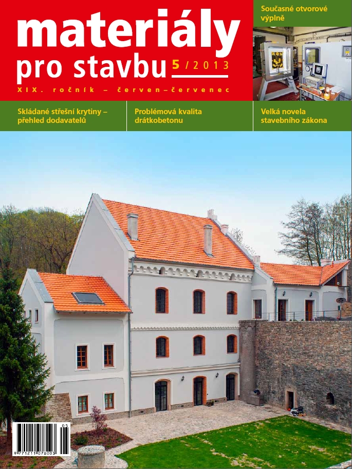 Dne 20. 6. 2013 vyšlo letošní páté číslo časopisu Materiály pro stavbu. Pokud nejste předplatiteli, získáte časopis na adrese Business Media CZ, s. r. o., Nádražní 32, 150 00 Praha 5, tel.: 225 351 133, e-mail: predplatne@bmczech.cz.
