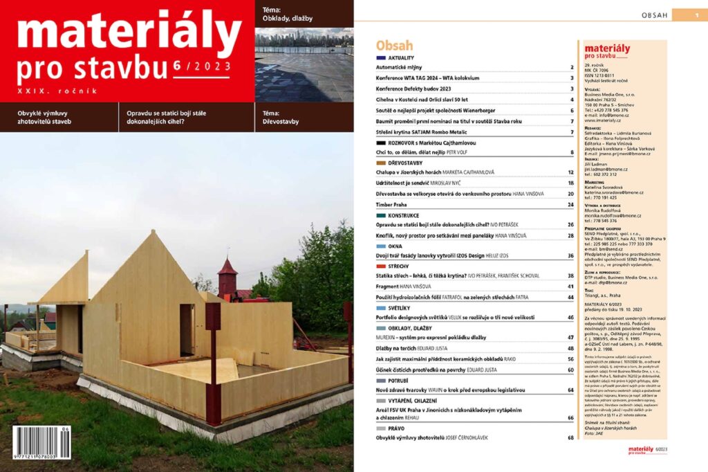 Nové číslo časopisu Materiály pro stavbu si můžete objednat online na www.send.cz, kde rovněž najdete formulář pro objednání předplatného. Další možností je si o časopis napsat na SEND Předplatné, s. r. o., Ve Žlíbku 1800/77, hala A3, 193 00 Praha 9, tel.: 225 985 225 nebo 777 333 370, e-mail: bm@send.cz.