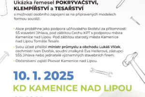 Ukázka řemsel POKRÝVAČSTVÍ, KLEMPÍŘSTVÍ a TESAŘSTVÍ s možností osobního zapojení se na připravených modelech formou soutěží. Akce proběhne jako podpora učňovského školství za přítomnosti SŠ stavební Jihlava, pod záštitou Cechu KPT s podporou města Kamenice nad Lipou. Pod záštitou starosty města Kamenice nad Lipou Tomáše Tesaře. Svou účast přislíbil ministr […]