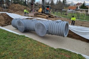 Ve slovenské Prievidze proběhla instalace podzemní retenční a požární nádrže o objemu 109 000 litrů. Nádrž MEA INFINITY TANK z polyetylenu byla do této velikosti složena z jednotlivých 2,1 m širokých základních modulů – koncových, středových, obloukových a dvou T-kusů. Právě variabilita spojování jednotlivých segmentů umožňuje zadržet vodu v objemu od 15 000 až po 200 000 […]