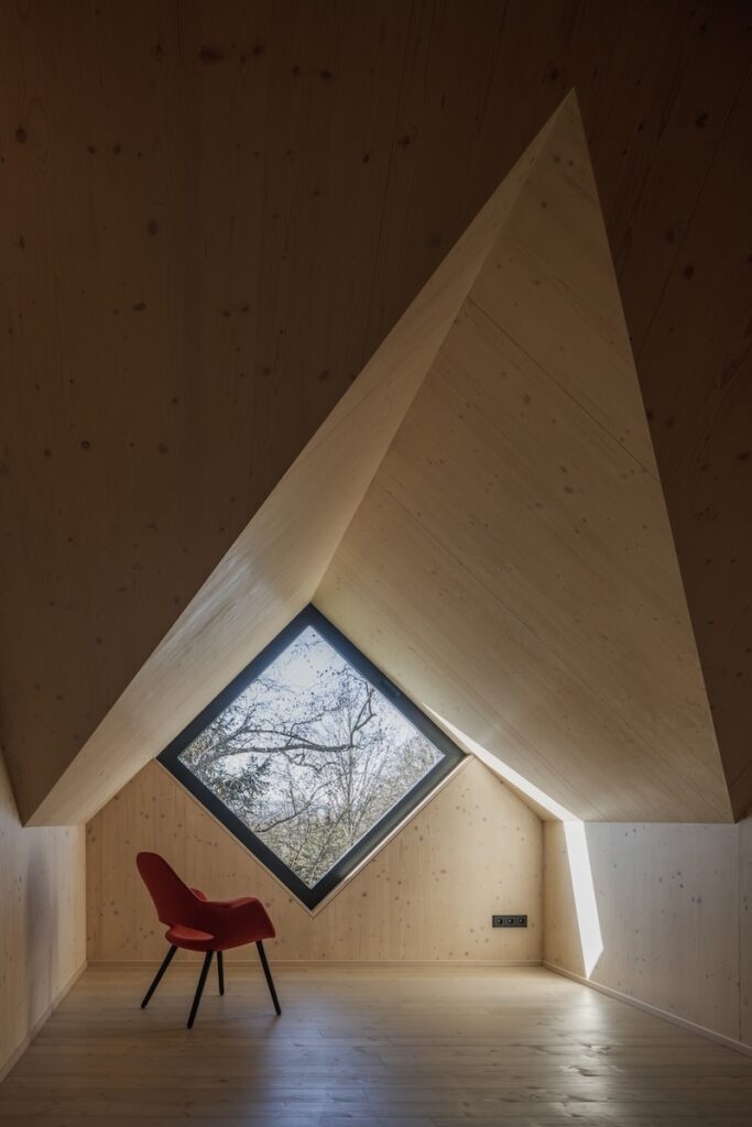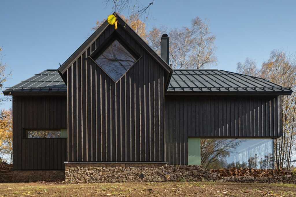 Místo stavby je součástí Národního parku Šumava. Z toho vyplývaly poměrně striktní požadavky na její podobu. Pro maximální kontext a přání investora zapojit krásné výhledy do krajiny jsme zvolily formu tradiční šumavské chalupy s otvory, které proměnlivě akcentují výhled daný polohou domu na pozemku, ať už jde o vzdálený horizont šumavských hřbetů nebo kontaktní obraz kořenů blízkých bříz. Uplatnily se zdejší tradiční znaky jako šířkovitost stavby, usazení rovnoběžně s vrstevnicemi, minimální terénní úpravy, absence oplocení, předsazený rizalit a sedlová střecha s polovalbou. Velké okno pod ní odkazuje abstraktně ke znaku alpské pavlače.