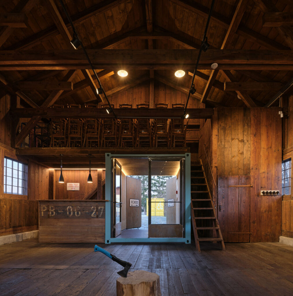 Nádražní sklad z 19. století přestal být pro dráhu užitečný a ve zchátralém stavu ho v roce 2010 i s okolními pozemky prodala městu Řevnice. Skrytý potenciál stavby objevila ředitelka místní Základní umělecké školy, která ji začala využívat jako výstavní, koncertní a taneční sál.  Originální atmosféra v dřevěné „železniční boudě“ všechny okouzlila a tzv. Dřevák dostal druhou šanci. Nové využití pro kulturní akce vyžadovalo vybudovat potřebné zázemí. Jak ale do halové stavby přidat wc, sklad, kuchyňku a třeba kancelář, aniž by se zacpal původní prostý, jednolitý prostor? Zázemí bylo proto umístěno převážně VEDLE původní budovy, a to ve formě repasovaných lodních kontejnerů, odkazujících k novodobým způsobům dopravy zboží. Tak se zachovala a nově interpretovala atmosféra dopravního uzlu, kterým železniční překladiště kdysi bylo.