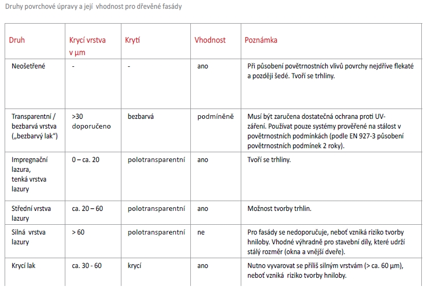 Vlhkost dřeva na fasádách se v ročním průměru pohybuje v závislosti na stanovišti, expozici atd. mezi 12 a 16 %. Toto rozmezí by v zabudovaném stavu nemělo být překročeno.