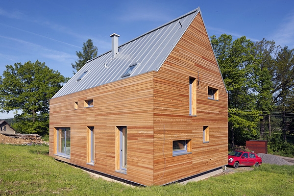 ● Latě – Latě s relativně malým průřezem (maximálně 4×8 cm) vytvářejí jemně členěný vzhled domovního pláště. Mohou být připevněny jak horizontálně, tak vertikálně, přičemž odstup mezi jednotlivými latěmi by měl být minimálně 7 mm (doporučuje se alespoň 10 mm). Při horizontálním položení je nutno použít latě se zkosenou horní a spodní hranou, aby se zlepšil odtok vody.