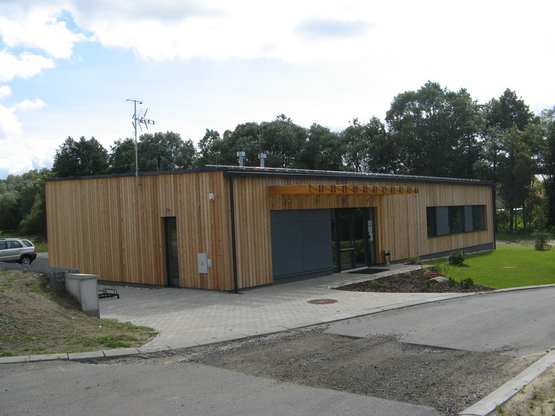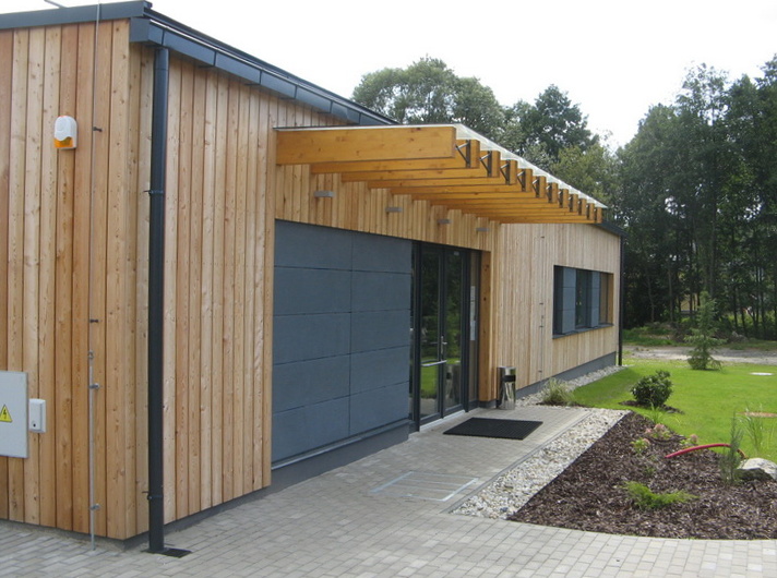 Středisko je navrženo jako dřevostavba na bázi lehkého skeletového systému. Všechny obalové konstrukce jsou navrženy se zvýšenými hodnotami tepelného odporu tak, aby se blížily pasivnímu standardu. Objekt je založen na železobetonové desce s obvodovými pasy. Obvodové stěny jsou tvořeny dřevěnými sloupky 60/160 mm a parobrzdnou sádrovláknitou deskou FERMACELL Vapor. Jsou opatřené vnitřní instalační předstěnou na vodorovném dřevěném roštu. Nosné a ztužující vnitřní stěny tl. 185 mm jsou tvořeny sloupky 60/160 mm a sádrovláknitými deskami FERMACELL 12,5 mm a jsou vyplněny protihlukovou minerální izolací. Vnitřní příčky tl. 125 mm jsou tvořeny dřevěnými sloupky 60/100 mm a sádrovláknitými deskami FERMACELL 12,5 mm a jsou také vyplněny minerální izolací. Pultová střecha se sklonem 5 ° je nesena lepenými „I“ nosníky z dřevěných hranolů, na nichž je umístěno prkenné bednění a falcovaná plechová krytina. Fasáda je řešena jako kombinace svislého palubkového modřínového obkladu a plechového obkladu, modřínový obklad tvoří většinu fasádní plochy. Okna a dveře jsou hliníková s trojsklem s rámy opatřenými tmavě šedým nátěrem, vnitřní dveře jsou dřevěné s rámovou zárubní.