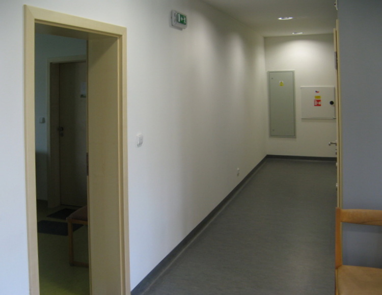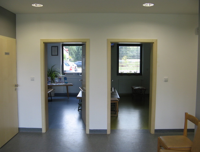 Za vstupními dveřmi střediska je umístěna vstupní hala, v níž se po levé straně nachází blok s technickými místnostmi (odpadky, úklid, technická místnost) a se zázemím pro zaměstnance (denní místnost, sociální zázemí, šatna). Ve střední části objektu je navrženo sociální zázemí pro pacienty spolu se skladem. Ze vstupní haly se vstupuje do jednotlivých samostatných čekáren, odkud je dále vstup do jednotlivých ordinací. Zařízení a dispoziční řešení ordinací bylo před zahájením výstavby projednáno s jednotlivými lékaři.