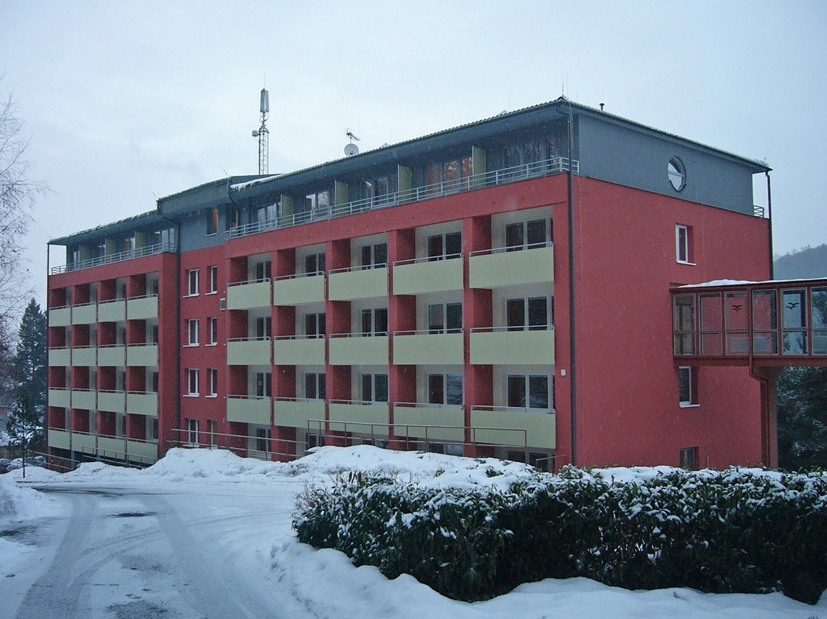Výběrové řízení na dodavatele stavby proběhlo na konci července. Generálním dodavatelem se stala firma Sofizo, s. r. o., která má zkušenosti z několika realizací systémů LindabConstruline a LindabRoof. První část dodávky materiálu nosné konstrukce proběhla v prvním srpnovém týdnu do dílen společnosti Sofizo v Čelechovicích, kde započalo sestavování jednotlivých modulů stěn a vazníků střechy. Mezitím započaly přípravné stavební práce na staveništi v Teplicích nad Bečvou – likvidace stávajících střešních souvrství a prozatímní izolování stropu proti vodě. Nutno připomenout, že stavba probíhá za plného provozu ubytovacích kapacit v nižších podlažích. První stěnové moduly byly převezeny do Teplic nad Bečvou ve třetím srpnovém týdnu a v následujících dnech byly vztyčeny a byla zahájena montáž stropů a pokládka střešních vazníků. V průběhu září bylo kompletně dokončeno zastřešení a odvodnění nástavby, zateplení stropů, opláštění a zateplení obvodových stěn. Ještě koncem září tak mohly být zahájeny práce na rozvodech elektřiny, vzduchotechniky, topení a vody, současně probíhaly práce na všech opláštění stěn deskami FERMACELL a vnějším zateplení objektu. Realizace byla dokončena v závěru loňského roku 2010, tedy zhruba čtyři měsíce od převzetí staveniště. Po rekonstrukci a nástavbě se zvýšila kapacita celého komplexu na 240 lůžek, celá budova je navíc nyní zateplena, má novou fasádu, okna i střechu.podle podkladů firem Lindab CZ a Fermacell
