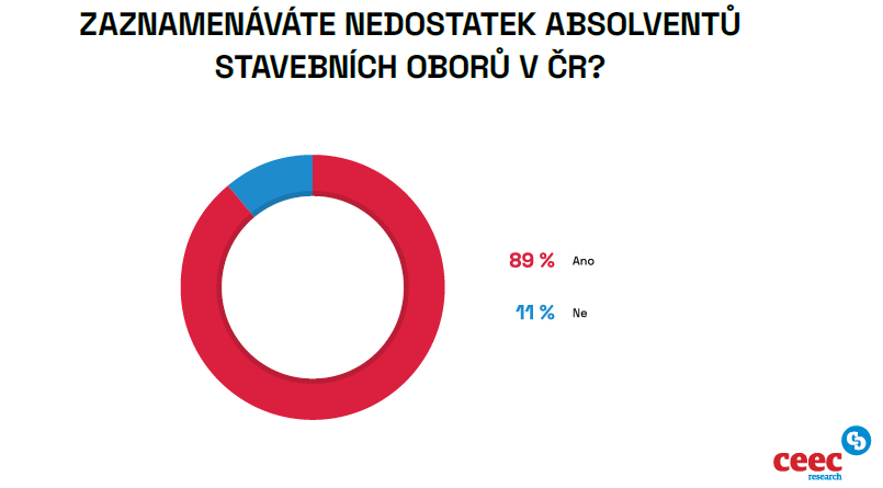 Z hlediska počtu je stav absolventů stavebních oborů a technických oborů poddimenzovaný. Existuje řada faktorů, které přispívají k nedostatku absolventů, jako je nízká atraktivita oboru, nedostatečná spolupráce mezi vzdělávacími institucemi a průmyslem nebo nedostatek motivace ke vstupu do stavebního oboru. Drtivá většina dotázaných stavebních společností (89 %) zaznamenává nedostatek absolventů stavebních oborů v ČR.