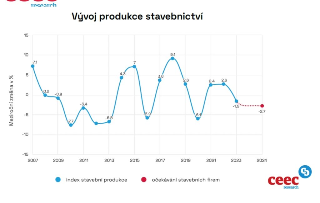 Údaje vychází z Kvartální analýzy českého stavebnictví Q4/2023 zpracované analytickou společností CEEC Research, která byla vydána při příležitosti konference Setkání lídrů českého stavebnictví 2023/H2 ve čtvrtek 9. listopadu 2023 na Pražském hradě a je zveřejněna na www.ceec.eu.