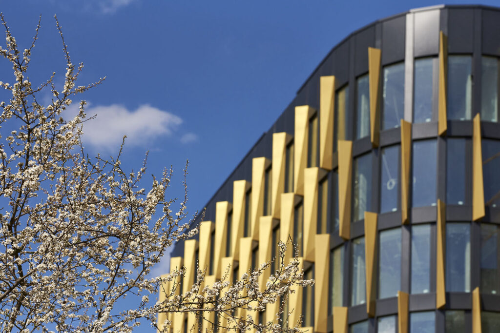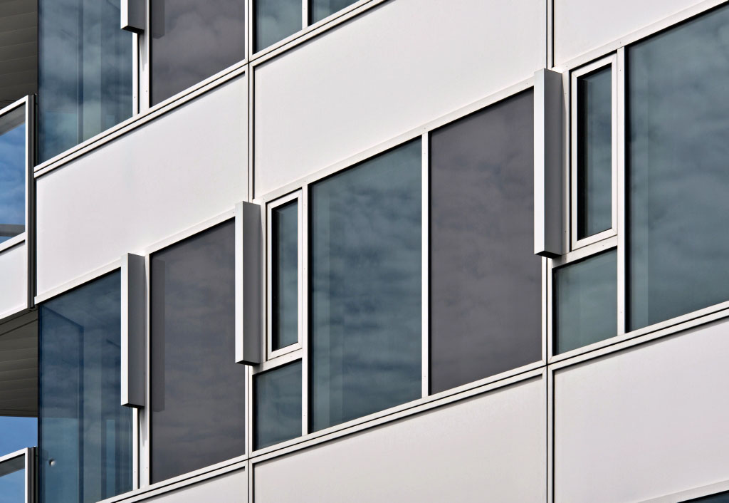 Tím, že jsou meziskelní žaluzie integrované do izolačního skla, odpadá nutnost masivních vnějších krytů pohonu, které neumožňují realizovat hladké lehké obvodové pláště.
