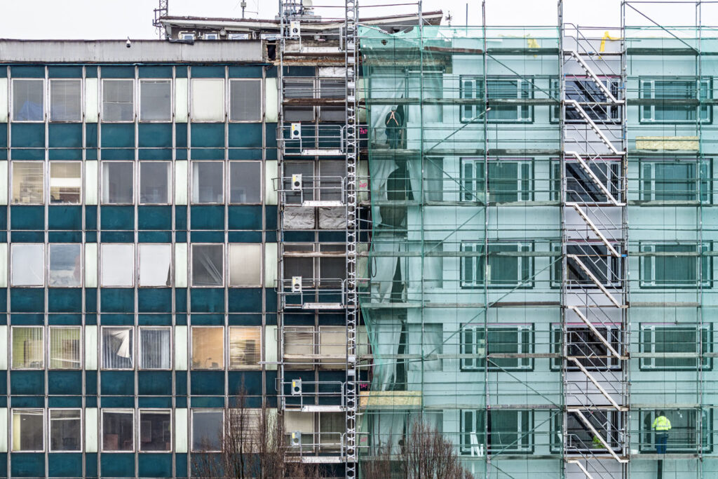 Zásadním zadávacím kritériem bylo navíc provádění prací za částečného zachování provozu budovy. Jednou z hlavních podmínek řešení se tak stal harmonogram jejich postupu, tomu bylo podřízeno i konstrukční řešení skladby nového obvodového pláště. Z různých variant rozdělení postupu realizace byla nakonec zvolena cesta dvou oddělených etap.
