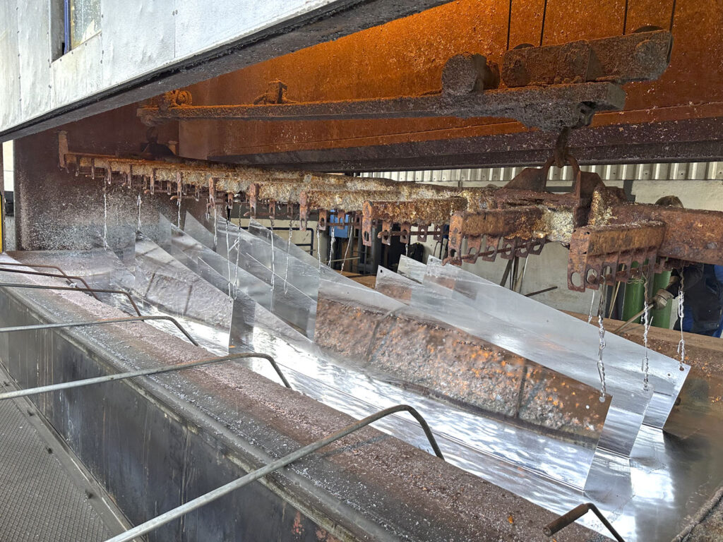 Plechy po zinkování zrály měsíc v uzavřené hale s konstantními podmínkami ovzduší, ve speciálních konstrukcích, ve kterých byly přepraveny na stavbu. Během prvních dnů po zavěšení na dům získaly hned patinu, jejich povrch se ale bude během let měnit.