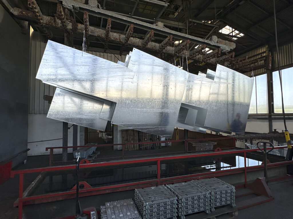 Samotný proces žárového zinkování primárně neslouží pohledovým účelům velkých exponovaných ploch. Mramorová textura, která je nyní na několik prvních měsíců či let na plechách vidět, vzniká orientací plechu při máčení do zinkové lázně. Součástí návrhu proto byla přesná orientace máčení jednotlivých plechů, aby výsledné žilkování na fasádě tvořilo šachovnici. Drobné kazy, které nemají vliv na kvalitu zinkové ochrany plechů, ale pohledově jsou viditelné, architekti naopak vítali, stejně jako stopy přirozených nečistot v lázni. Tyto drobné chyby jsou z architektonického hlediska vítaným zpestřením fasády, nezakrývají živost a přirozenost procesu zinkování.
