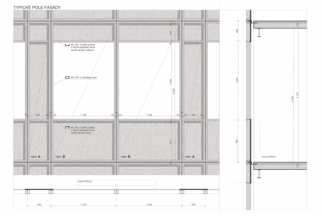 „Z důvodů ekonomiky celého projektu jsme se rozhodli zachovat rámy boletických panelů z uzavřených jeklů včetně jejich ukotvení ke stropním konstrukcím. Po demontáži dalších vrstev původního pláště proběhla revize a vyspravení rámů, zejména zkorodovaných styčníků v nadpraží a parapetu oken. Oproti tomu hlavní jeklové rámy byly až na několik výjimek v místech, kde zatékalo, zcela v pořádku, včetně původního nátěru, tj. po 50 letech a při tloušťce profilu 2 mm. Vzhledem k navýšení celkové hmotnosti fasády, už především kvůli oknům s trojsklem, a také aktuální legislativě, bylo nutné posílit statickou vazbu nosné konstrukce s fasádou novými ocelovými kotvami. Následně byly původní rámy ošetřeny nátěrem, vyplněny tepelnou izolací, z exteriéru přibyla další významná část tepelné izolace formou fasádních panelů. Celá konstrukce je provázaná až k vertikálním Z profilům, na které jsou navěšeny fasádní plechy,“ upřesňuje Jiří Žid.