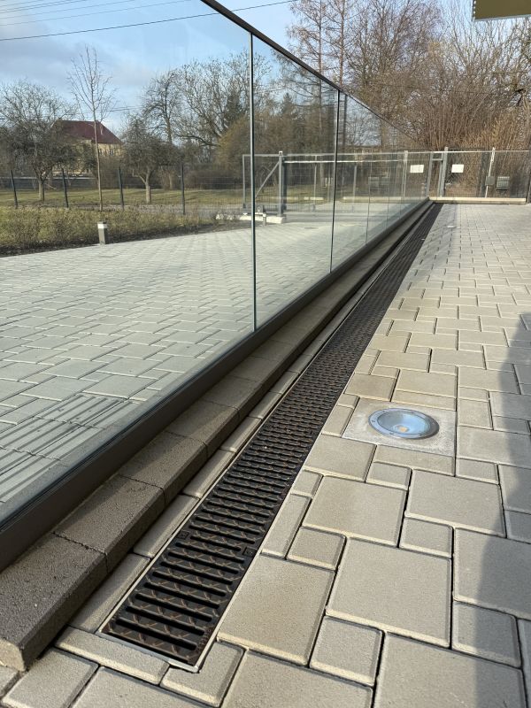 Ing. Jan Ochec, jednatel MEA Water Management zdůvodňuje: „Proto zde našlo uplatnění liniové povrchové odvodnění MEA, které umožňuje spádovat plochy jednoduše pro rychlý odvod vody a s ohledem na bezpečný bezbariérový prostor.“