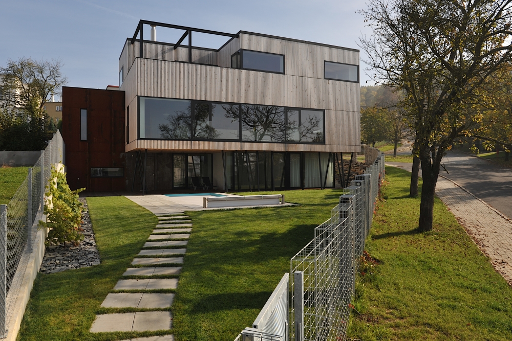 Ve vilové čtvrti nedaleko centra Zlína vznikla zajímavá rodinná stavba, která je stálým domovem manželskému páru a jejich dvěma psím mazlíčkům. Řádově 30 až 70 let stará okolní zástavba předurčuje, že dům se co do vzhledu a použitých materiálů liší, svým rozsahem však ráz města respektuje.
