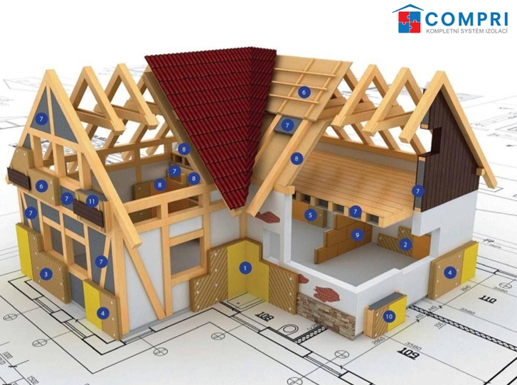 Jedině výběr kvalitních materiálů a technologií s ohledem na jejich vzájemné působení nabídne bezstarostné užívání a v mnoha směrech také zdravé bydlení, což je možná to nejdůležitější hledisko. To se týká zejména skladeb tepelných izolantů, parobrzdných a voděodolných vrstev a difuzně otevřených fasádních systémů. V kontextu této filozofie uvádí na trh firma CIUR, a. s., řešení pod názvem COMPRI®.COMPRI® zahrnuje ucelený skladebný systém materiálů, které umí vyřešit veškeré možné situace týkající se tepelných izolací staveb a rovněž i akustického komfortu. Všechny součásti systému COMPRI® jsou nejen kvalitativně 100% prověřené a vyzkoušené, ale především se vzájemně doplňují a funkčně na sebe navazují.