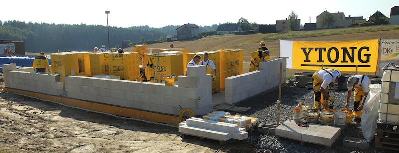 Společnost Xella CZ, výrobce pórobetonu Ytong, završila úspěšný projekt. V Bolaticích u Opavy ve spolupráci se stavební firmou DK1 dokončila stavbu rodinného domu o rozloze téměř 144 m² včetně přístřešku a terasy – hrubá stavba byla postavena za 24 hodin a za 30 pracovních dnů od prvního výkopu byla už stavba připravená k nastěhování.