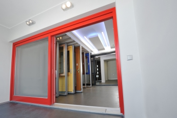 Showroom má hlavní vstup z Brněnské ulice a jeho plocha cca 250 m2 je rozdělena na dvě pomyslné části. V hlavní, prodejní části probíhají jednání s příchozími zákazníky a jsou zde vystaveny různé vzorky sortimentu firmy. Druhá část slouží především jako moderně vybavený prostor pro různá jednání zaměstnanců firmy s příchozími návštěvami v několika prosklených místnostech.