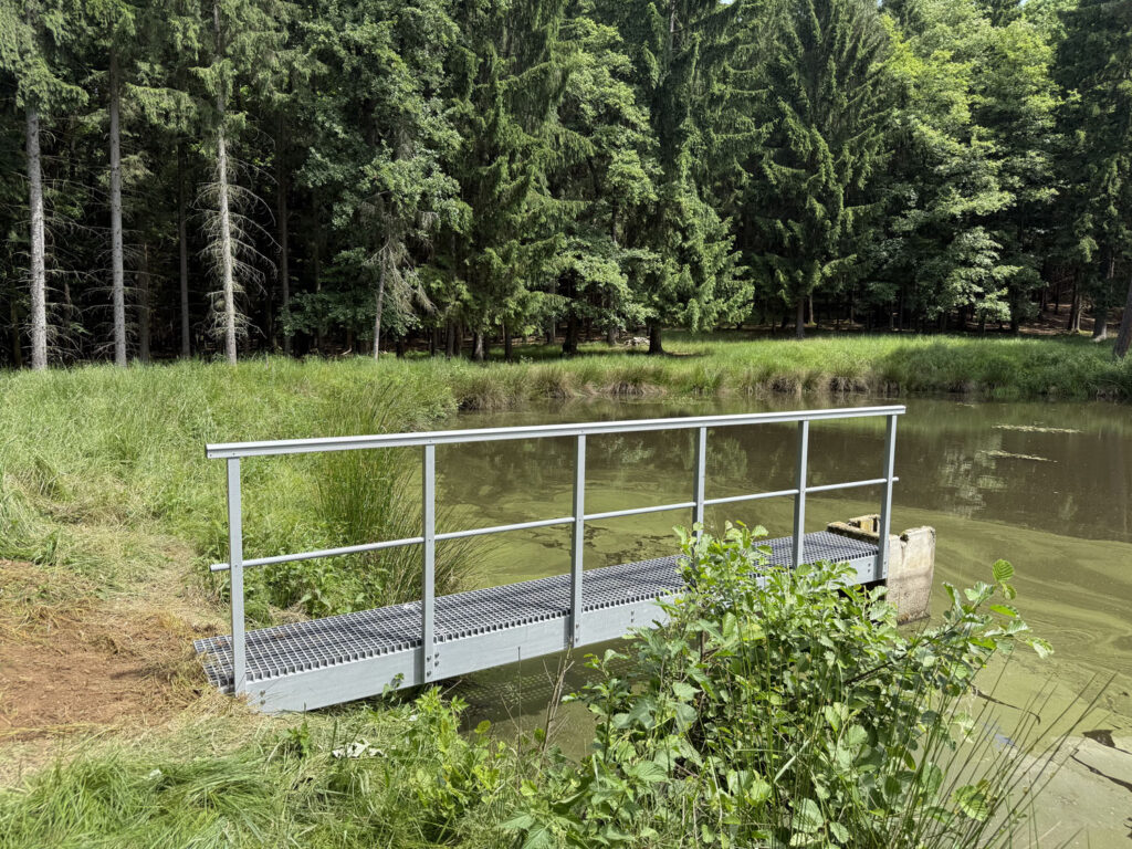 V daném prostředí by byl téměř nemožný úkol dopravit ocelové lávky k rybníkům, protože svařování a pozinkování nelze provádět na místě.